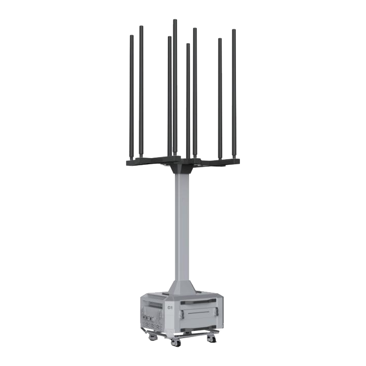 Weighing only 11.5kg, the SMA J7-5000 delivers 400W total jamming power with 45-minute battery life, enabling single-operator control to neutralize drones via 8 independent frequency bands (GPS, ISM, GNSS).